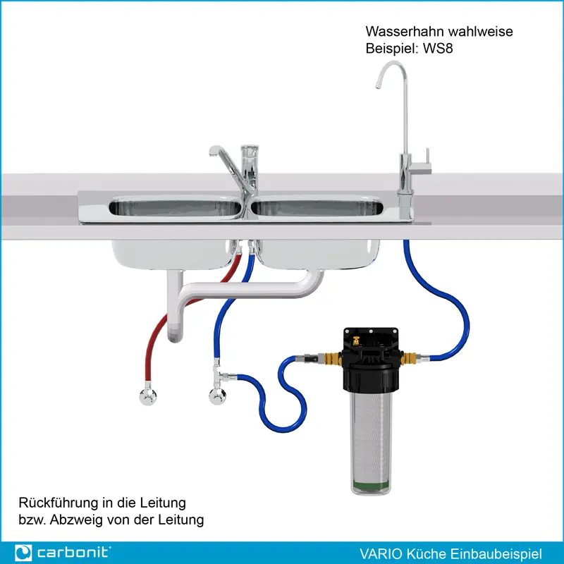 Beispiel für eine Untertisch-Installation an einer Haushaltsspüle: