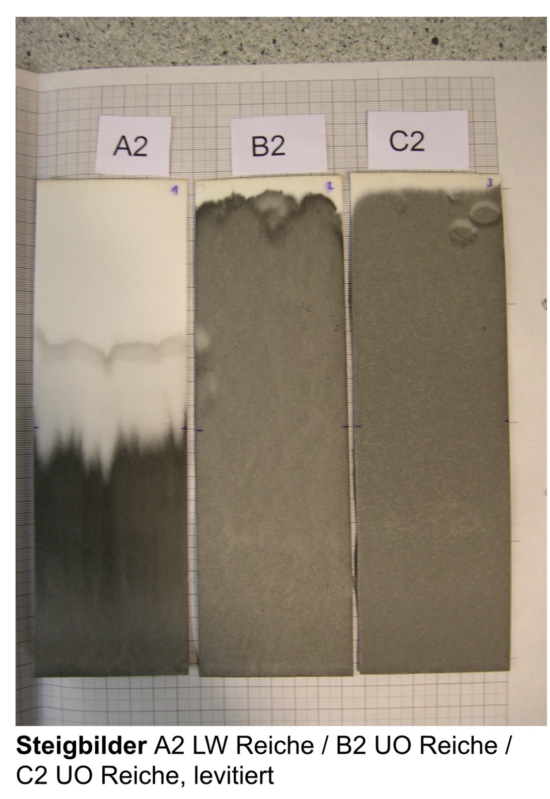 Mit der bildschaffenden Methode der sogenannten Steigbilder können nach Literaturangaben die energetischen Kräfte des Wassers veranschaulicht werden. Im Wasser gelöster Farbstoff (schwarze Tusche) wird durch die Verwendung von geeignetem Papierfilter-Material in einem Saugversuch durch die Kapillarwirkung nach oben transportiert, qualitative Unterschiede treten hierbei bildhaft hervor.