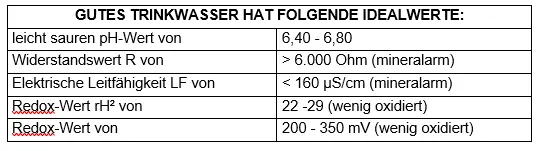 Tabelle 1: Trinkwasser-Idealwerte nach Prof. Louis-Claude Vincent