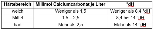 Tabelle 2: Härtebereiche nach Wasch- und Reinigungsmittelgesetz /WRMG), 2007
