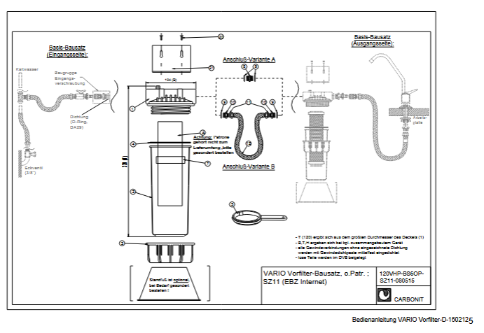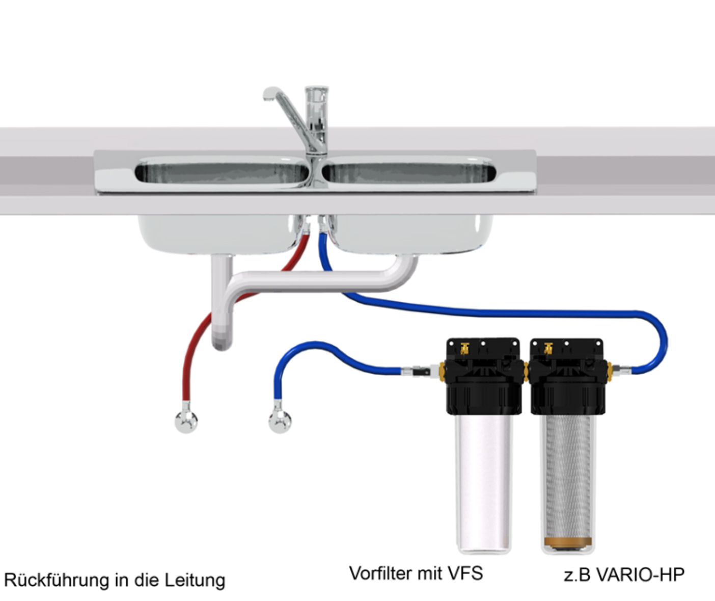 Vorfiltration bei Partikelbelastung des Eingangswassers, verlängert die Lebensdauer der Feinfilter-Patrone.